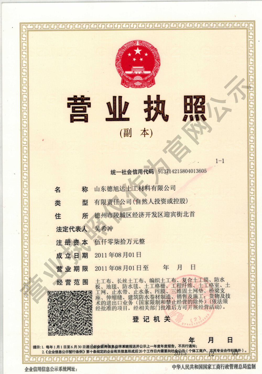 山東德旭達(dá)土工材料有限公司堅(jiān)持以“鑄百年企業(yè),造不朽品牌”為公司經(jīng)營(yíng)理念,服務(wù)市場(chǎng),奉獻(xiàn)于社會(huì)。