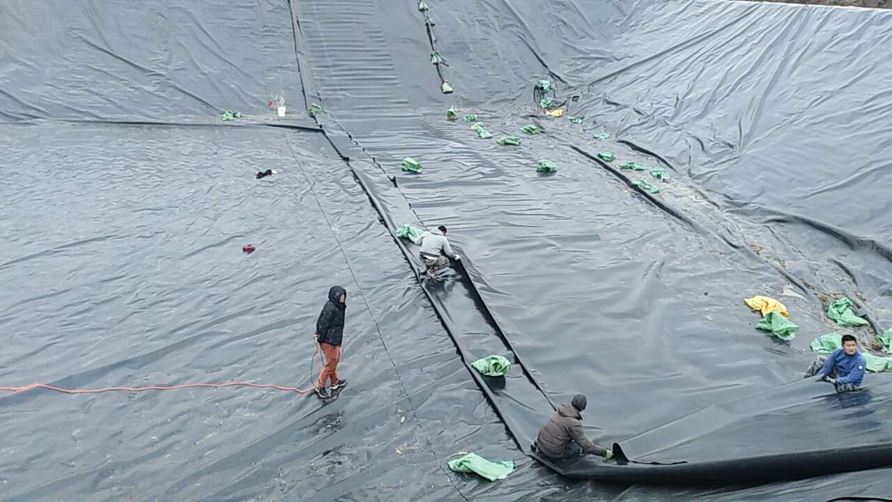 為防止大風把覆蓋的土工膜吹開、破壞,土工膜上要設置重物壓塊,壓塊可因地制宜選擇,目前選擇比較多的為水泥塊、汽車輪胎、土工布袋裝土、大塊卵石等。有的地方垃圾場處在風口位置,不僅土工膜上要壓載重物,還要設置錨固溝,錨固溝斷面尺寸1000×1000mm,間距為平行膜走向30米,溝內填滿土后,為防止雨水把溝內填土沖走,還要再用寬出錨固溝兩側各200mm 的土工膜覆蓋在錨固溝上,并應與平面土工膜焊接為一體。